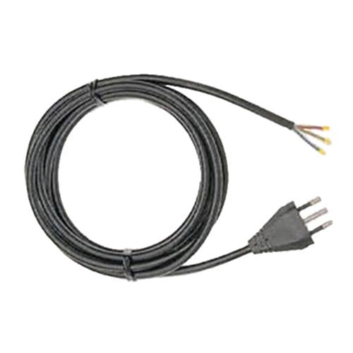 Il cavo è composto da tre cordine di sezione 1mm, 1 blu ,1 marrone, 1 giallo\verde rivestite da guaina nera, ad una estremità è dotato di spina a tre punte italiana tipo piccolo / shuko; dall'altra parte ci sono le tre cordine spelate e intestate con i puntalini.