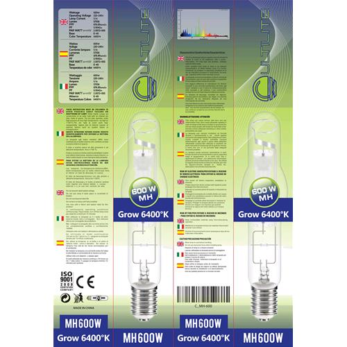 Le nuove lampade Cultilite MH agli alogenuri metallici sono dedicate alla fase di crescita della pianta, dalla germinazione fino all'inizio della fioritura.Caratteristiche tecniche: